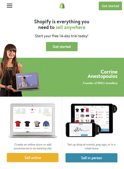 我們發(fā)現(xiàn),Shopify 并沒有像 Amazon 一樣采用復(fù)雜的頁面布局,更沒有放置太多的內(nèi)容在首頁,這使他們可以輕而易舉地實(shí)現(xiàn)響應(yīng)式布局。簡(jiǎn)潔的網(wǎng)站設(shè)計(jì)可以讓訪客以最快的速度找到自己想要的東西。